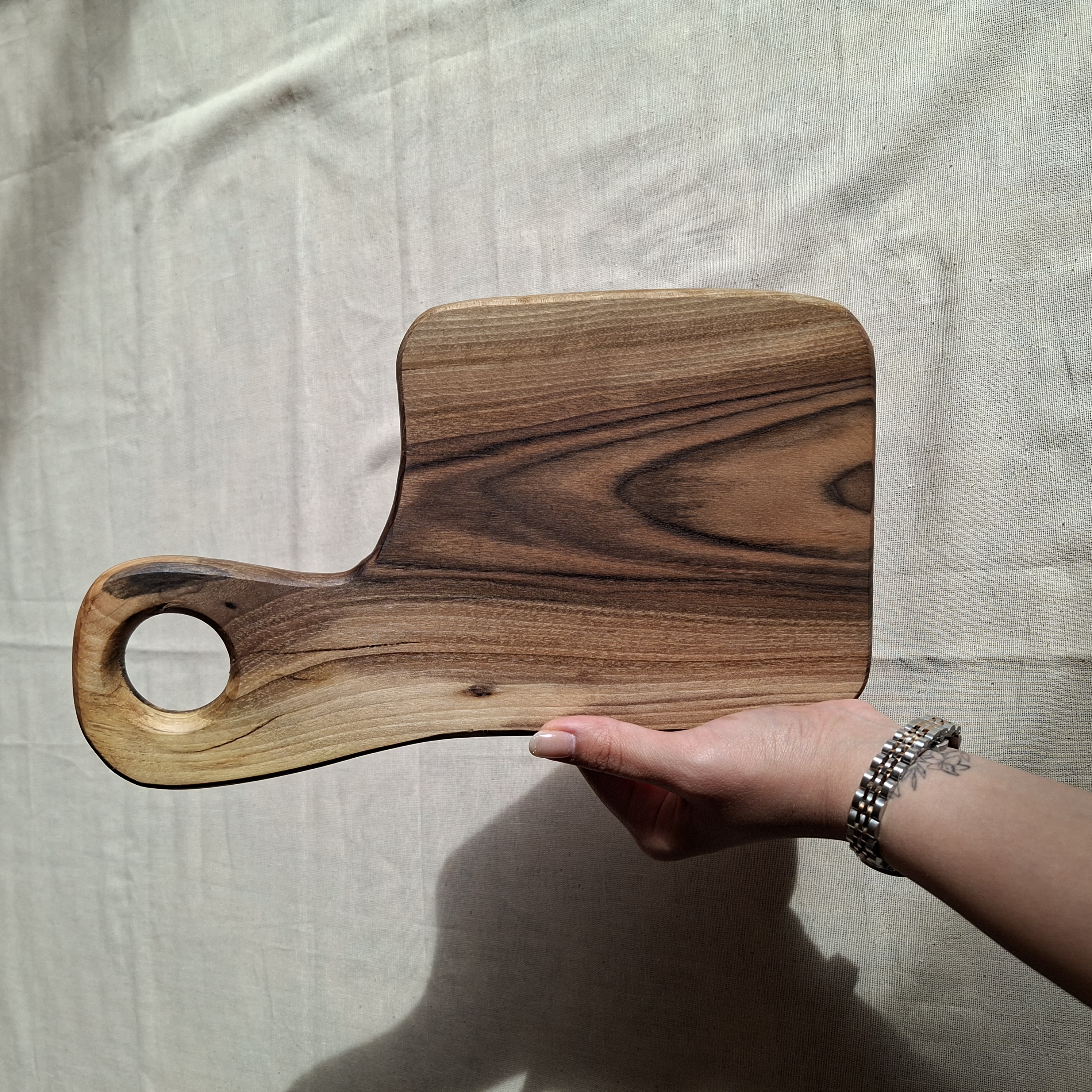 تخته سرو چوبی مدل ساطوری🥩🔪 دست ساز🪵🪚 ساخته شده از چوب با کیفیت گردو و روغن بادوام و ضد حساسیت ✅ قابل استفاده برای خورد کردن مواد غذایی🔪🥦🥩 قابل استفاده برای فینگر فود ، تزئین و دکور میز مزه🧀🥓 تصویر سوم عکس از پشت کار می باشد.