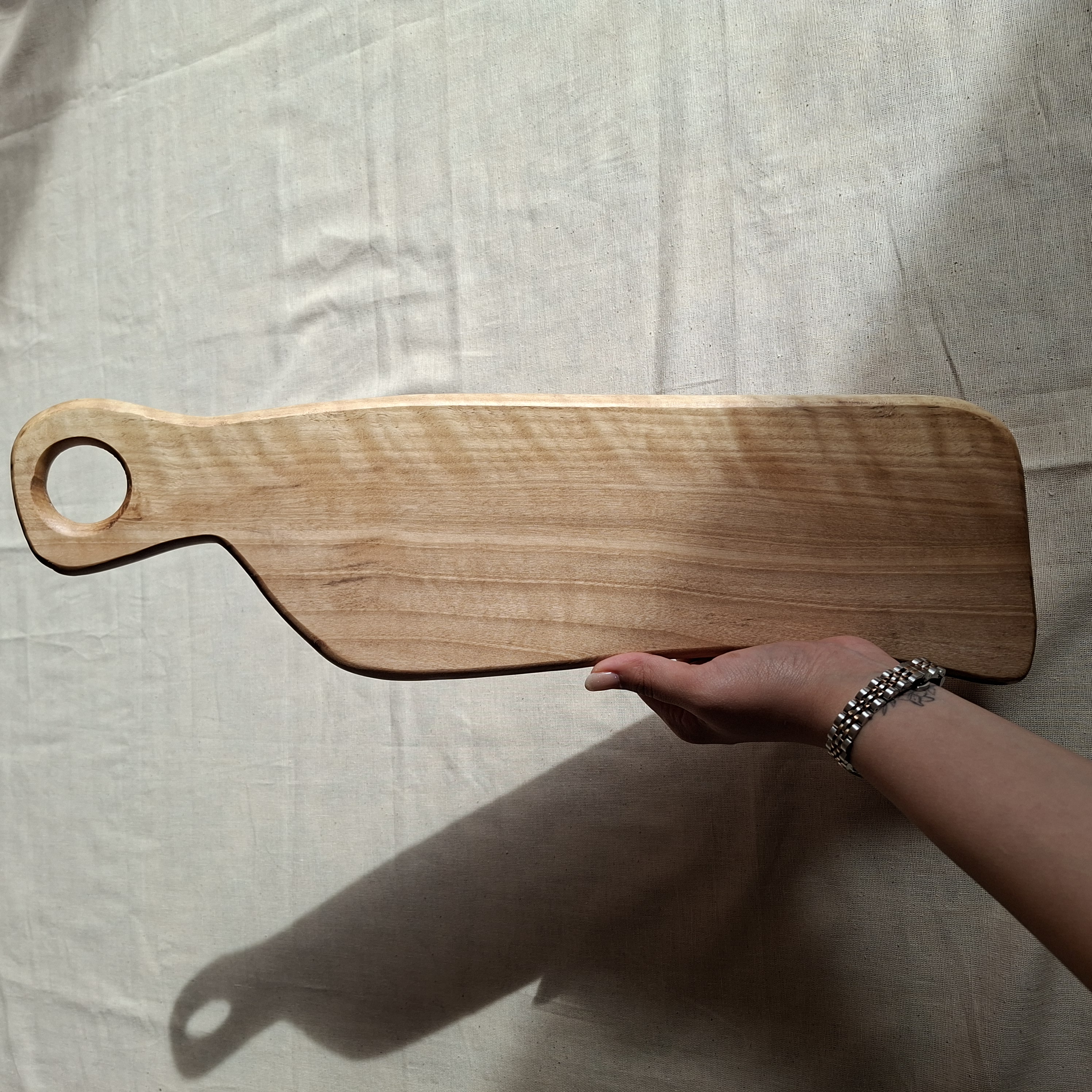 تخته سرو چوبی فینگر فود سایز بزرگ🥪 دست ساز🪵🪚 ساخته شده از چوب با کیفیت گردو و روغن بادوام و ضد حساسیت ✅ قابل استفاده برای خورد کردن مواد غذایی🔪🥦🥩 قابل استفاده برای فینگر فود ، تزئین و دکور میز مزه🧀🥓 تصویر سوم عکس از پشت کار می باشد.