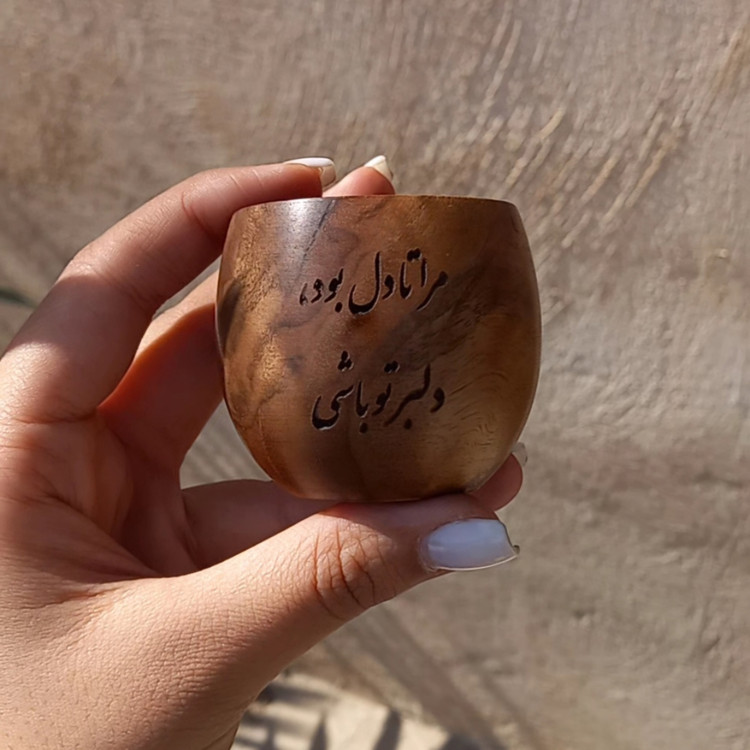 "میتوانید این محصول را با زیر لیوانی چوبی مکمل آن و حکاکی سفارشی تهیه کنید."